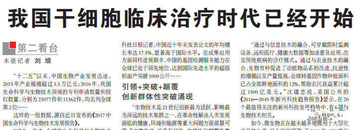 科技日?qǐng)?bào)干細(xì)胞相關(guān)新聞回顧