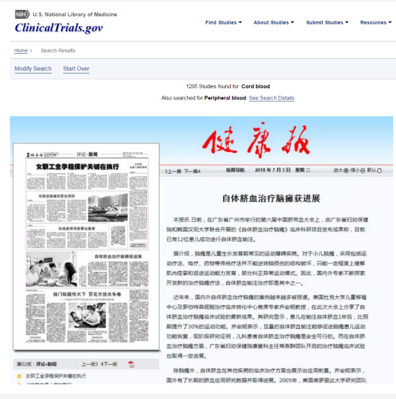 圍產(chǎn)期臍帶血干細胞的應用研究也呈現(xiàn)突飛猛進之勢。據(jù)美國臨床試驗數(shù)據(jù)庫(ClinicalTrials.gov)的統(tǒng)計,截至目前,全球正在開展的圍產(chǎn)期臍帶血臨床研究已超過1200項,涉及腦癱、自閉癥、缺血性腦卒中、腦損傷、糖尿病等很多病種。顯而易見,當圍產(chǎn)期臍帶血廣闊的應用前景變成現(xiàn)實時,擁有“種子細胞”的人群將率先享受到干細胞技術(shù)釋放的應用紅利。