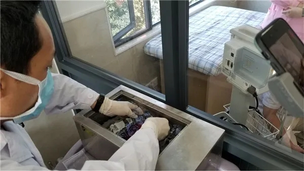 6月17日上午10點20分左右,廣東省婦幼保健院康復(fù)樓的輸液室里,四川臍血庫工作人員馮彪與醫(yī)生再次確認(rèn)圍產(chǎn)期造血干細(xì)胞信息無誤后,一邊戴上醫(yī)用橡膠手套,一邊將一根溫度計插入水中,38℃,然后他小心翼翼地從身旁的液氮罐中取出一份鮮紅的圍產(chǎn)期造血干細(xì)胞,慢慢浸入水中,并微微地?fù)u晃著,讓它均勻受熱。