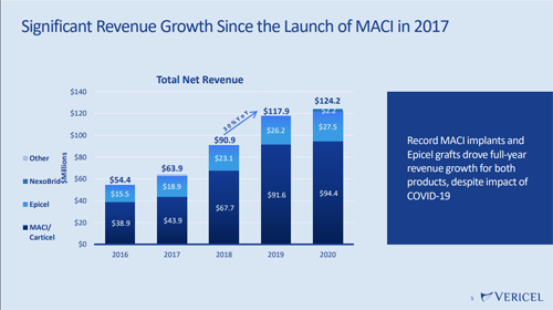 其中不乏市場反響很好的產(chǎn)品,如韓國Medipost公司的Cartistem、美國Vericel公司的MACI。前者已連續(xù)4年銷售額超過100億韓元(約6000萬元),MACI的銷售額在2020年受到新冠影響下仍然達(dá)到了9440萬美元(約6億元)。