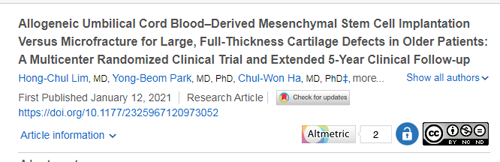 在這項為期48周的隨機(jī)對照III期臨床試驗中,臍帶血間充質(zhì)干細(xì)胞與透明質(zhì)酸的結(jié)合使用取得了顯著的效果,患者的VAS疼痛、WOMAC和IKDC評分較基線水平均有顯著改善,軟骨狀態(tài)也有了顯著改善。
